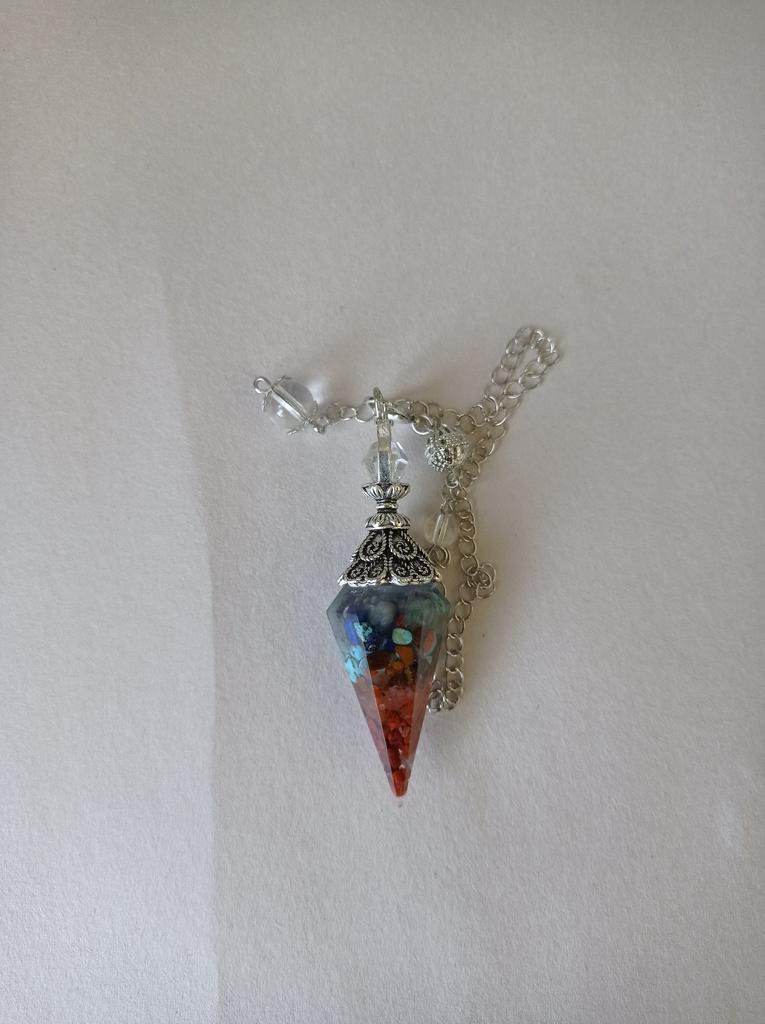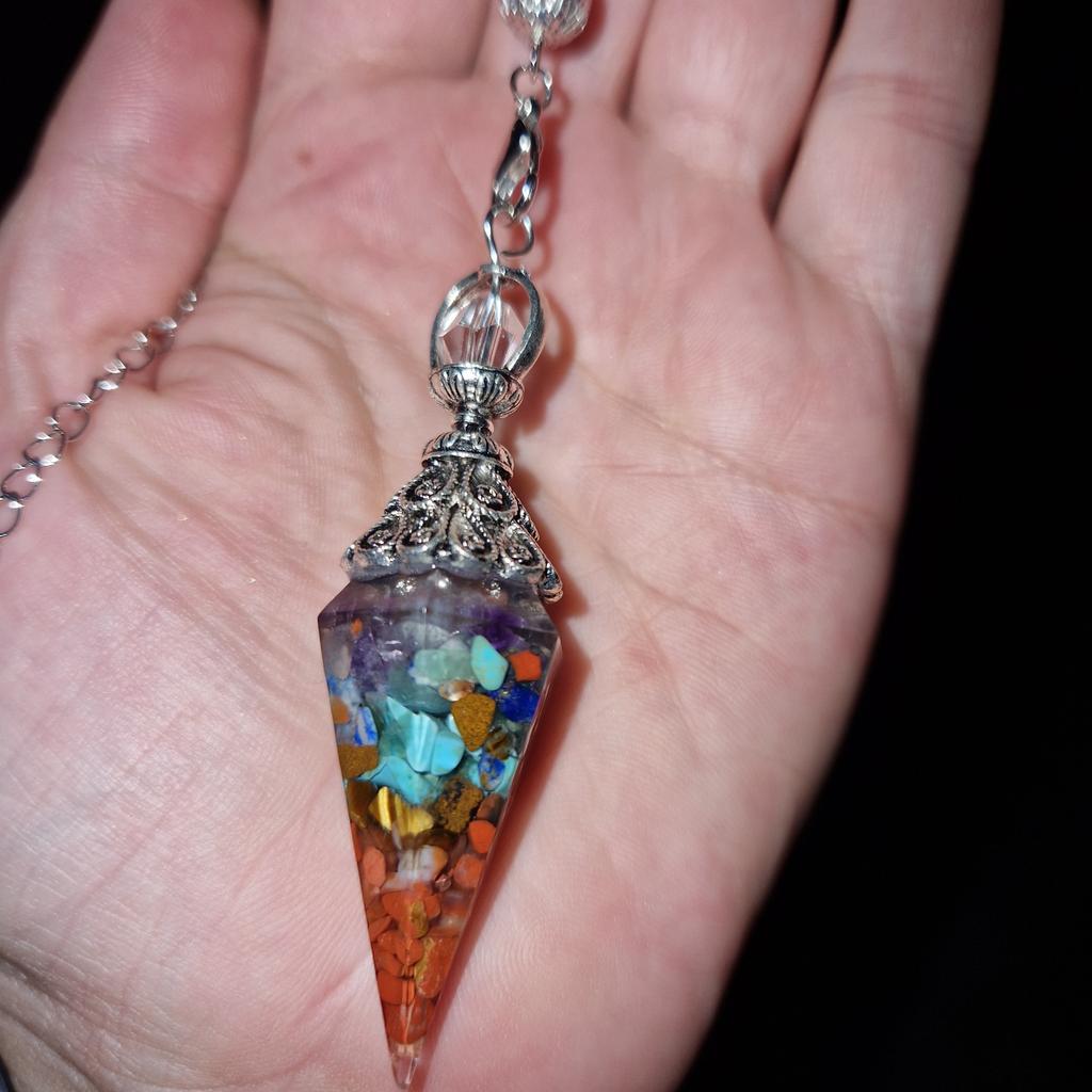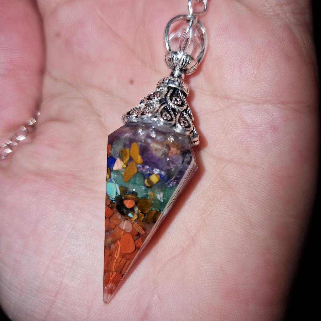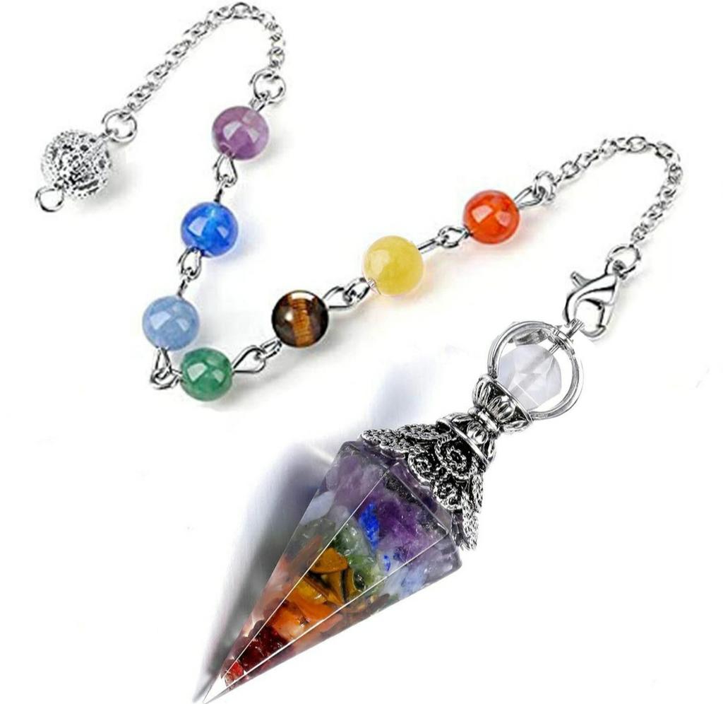 Natural 7 Chakra Healing Crystal Dowsing Pendulum Reiki Chips Orgone Spiritual Pendant for Divination, Wicca, Energy Balancing