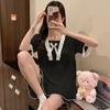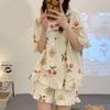 Cute Cartoon Animal Women Sleepwear with Chest Pads Short Sleeve Top Shorts Pajamas