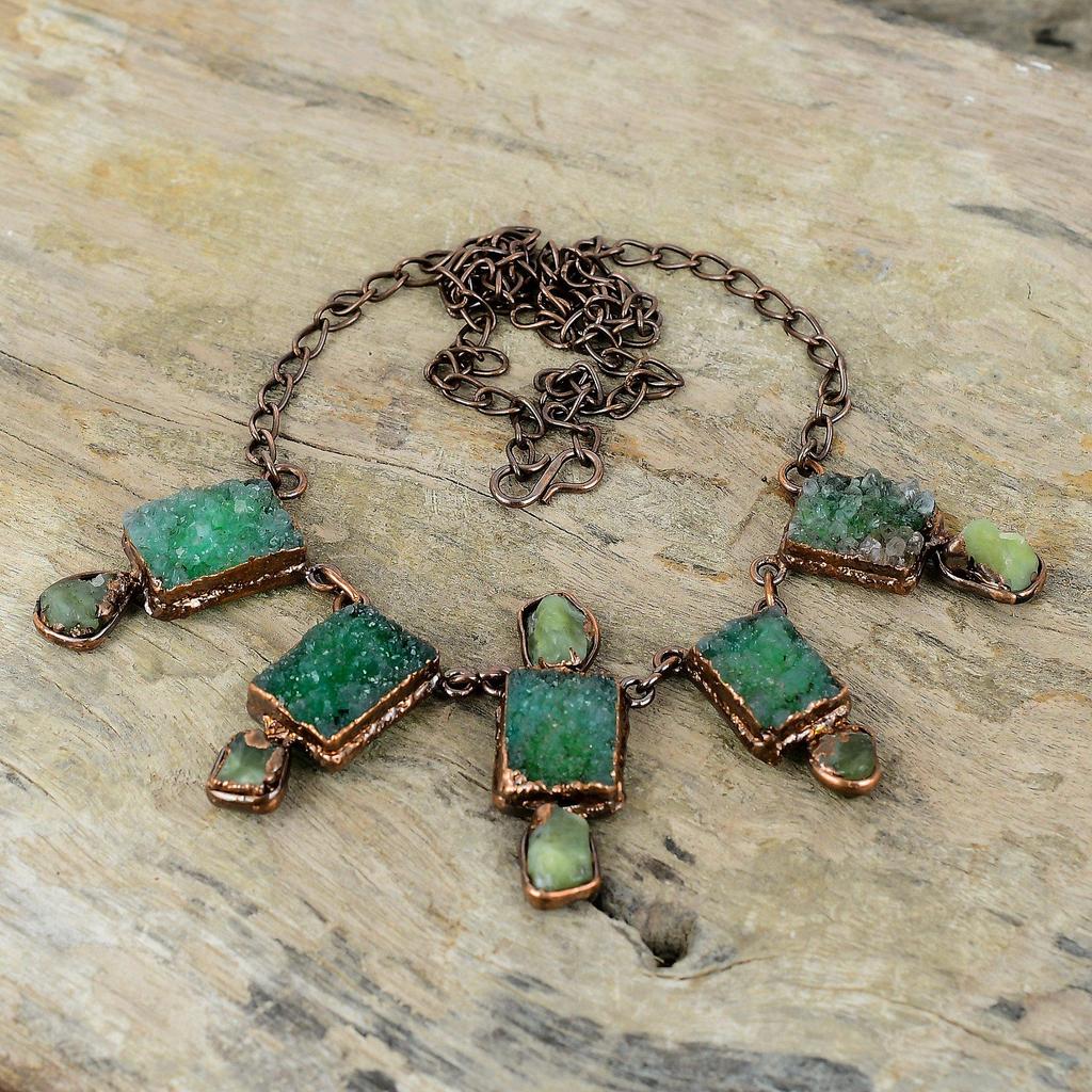 Green Druzy Necklace Electroformed Copper Necklace Aquamarine Rough Necklace Adjustable Chain Necklace Gemstone Copper Jewelry Wedding Gift