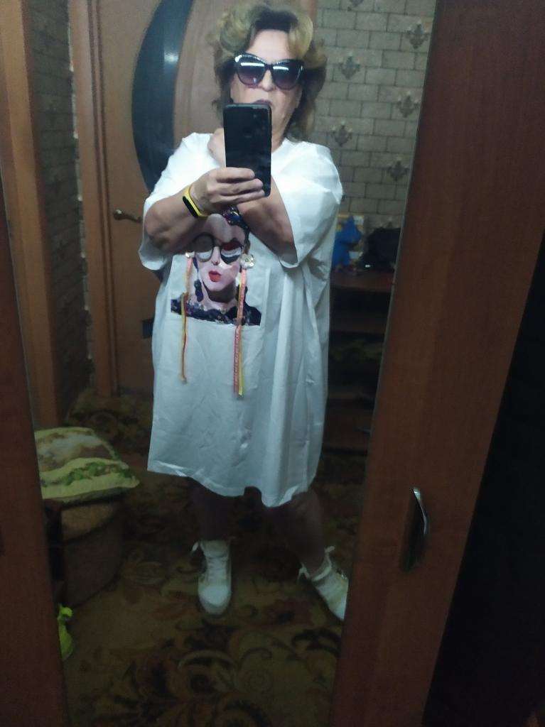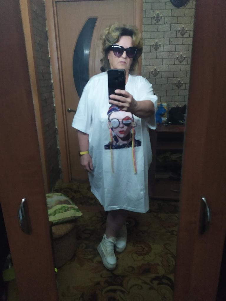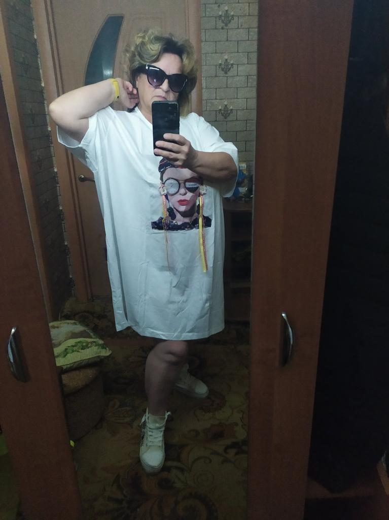 Summer Plus Size Women's T-Shirt Dress Loose Flesh Covering Patch Stretch Printed Short Sleeve Tops