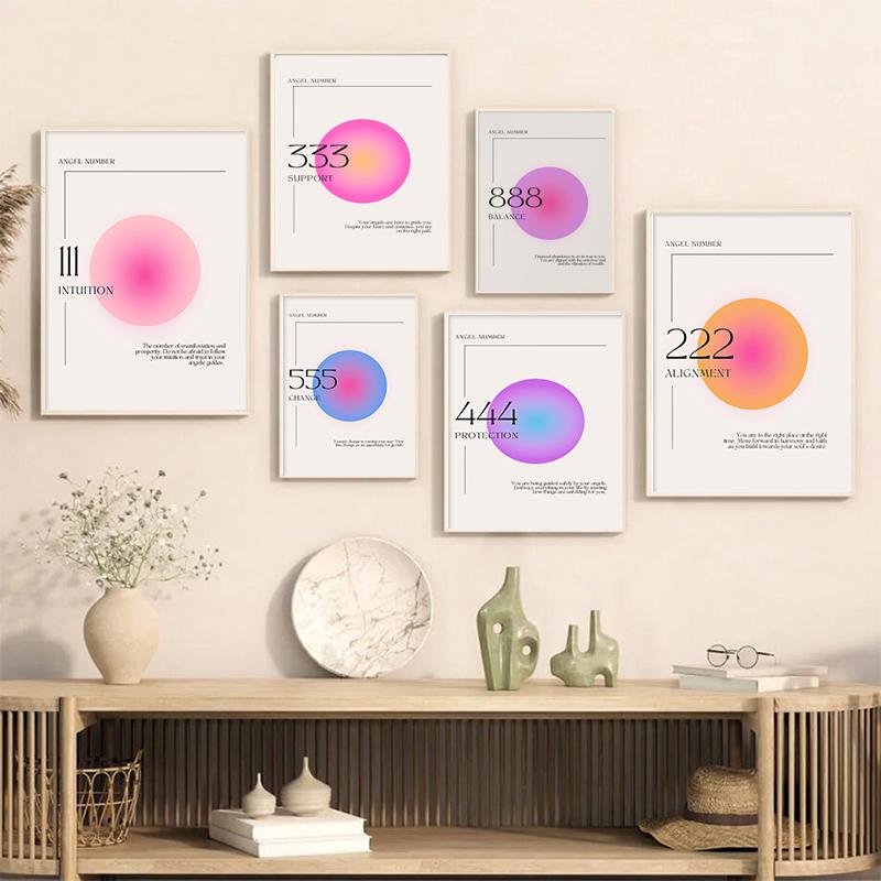 Gradient Spiritual Aura Angel Number Canvas Painting and Print Aesthetic Danish Pastel Poster Wall Art Picture Living Room Decor