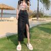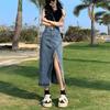 Irregular Split Denim Skirt Women's Raw Edge Casual Pear Medium Long A Line Half Bodycon Hip Skirt