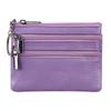 Women's Genuine Leather Coin Purse Mini Pouch Change Wallet with Keychain NEW Three Zipper Fashion Multicolor