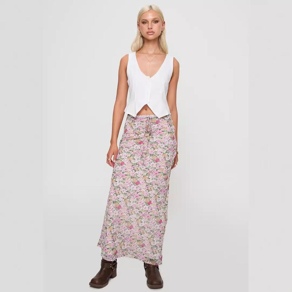 Floral Print Lace Long Skirt for Women Elegant Stylish Bodycon Tie High Waist Maxi Skirt Summer Breathable Lightweight Soft Comfy Vacation Skirt
