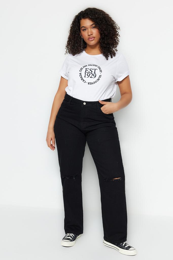 Women's Style Plus Size Black High Waist Detailed Bootcut Jeans