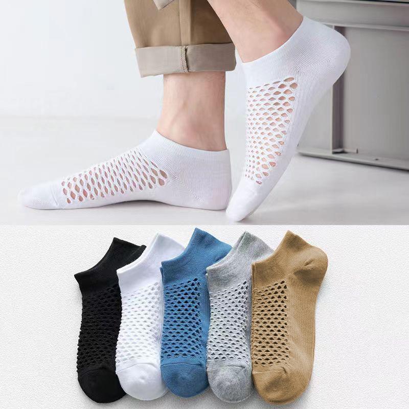 1/10 Pairs Men's Summer Breathable Thin Socks Mesh Sweat-absorbing Cotton Socks Solid Color Low-top Shallow Boat Socks