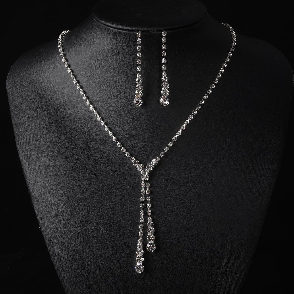 New Bridal Water Drop Set Necklace Earrings, Shiny Wedding Accessories for Women