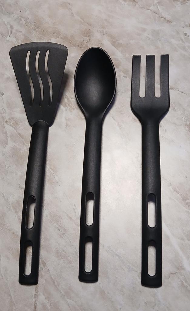 Good day everyoneπππ πββοΈ!!! Received a kitchen set consisting of three items, a boat, a fork, and a spatula. What is doll-like and childish, although the plastic looks sturdy ππ. Need to try it in action, then evaluate, so for now four stars. PEACE, GOODNESS, AND HAPPY SHOPPING TO ALL πππππΉ!!!