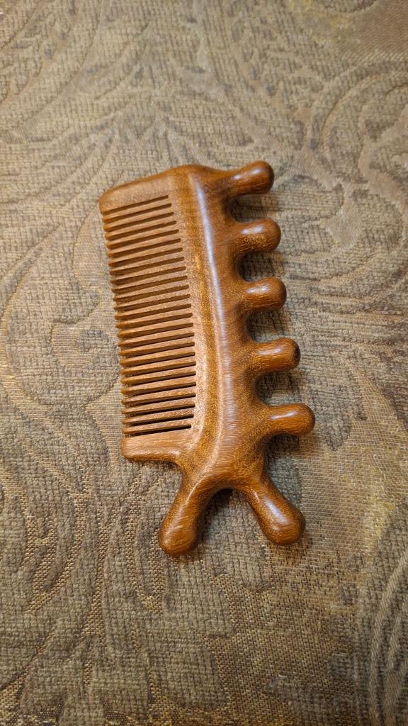 Excellent comb, double-sided, the second side can be used for massage. Matches the photo, I recommend it