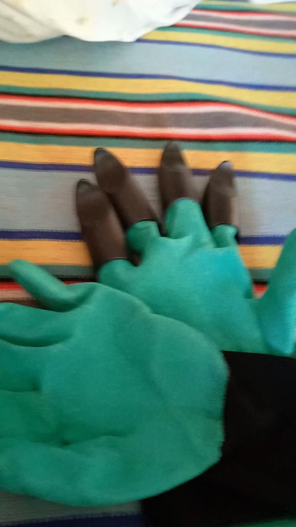 Ordinary rubber gloves. There are 4 claws attached to the right one. I thought there would be on both.