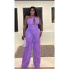 Backless Pleated Sexy Jumpsuit Women Rompers Halter Neck Sleeveless V Neck Women Bodysuits Loose Backless High Waist Playsuits Outfits Clothes 857