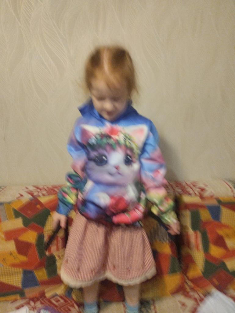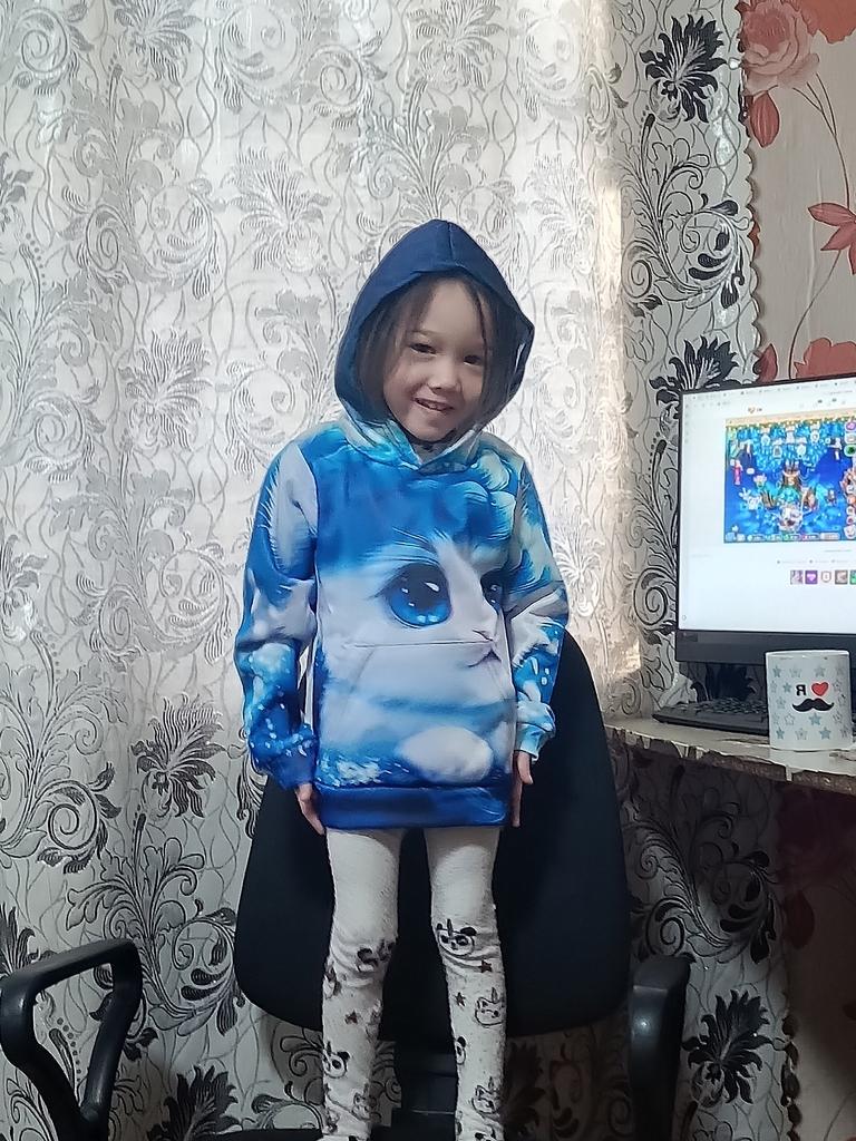 The picture is bright, the sweatshirt is thick but thin. The seams are even. The child is happy.