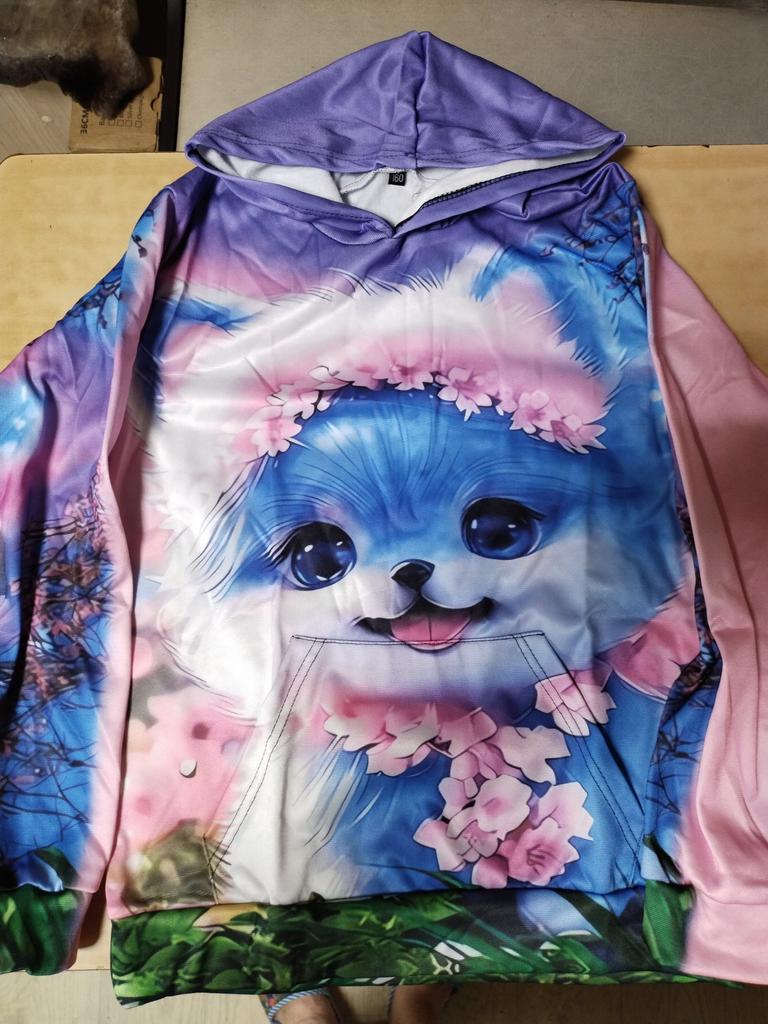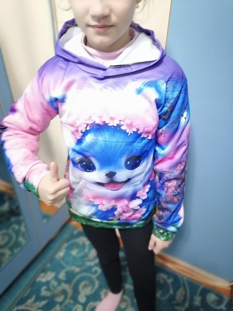 The sweatshirt is excellent, the print is bright, I bought it not for myself.