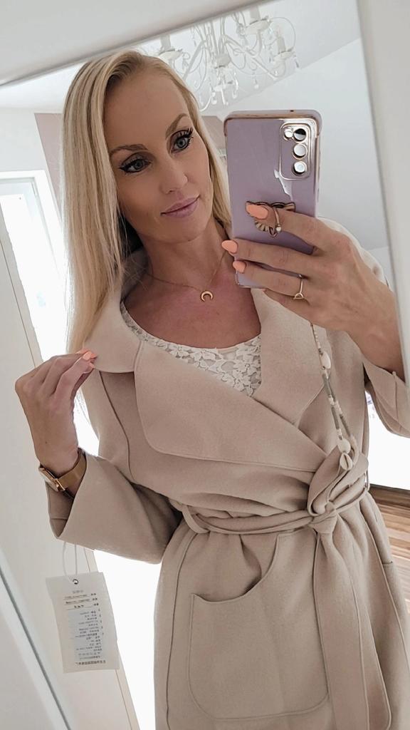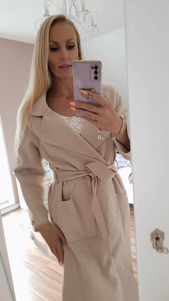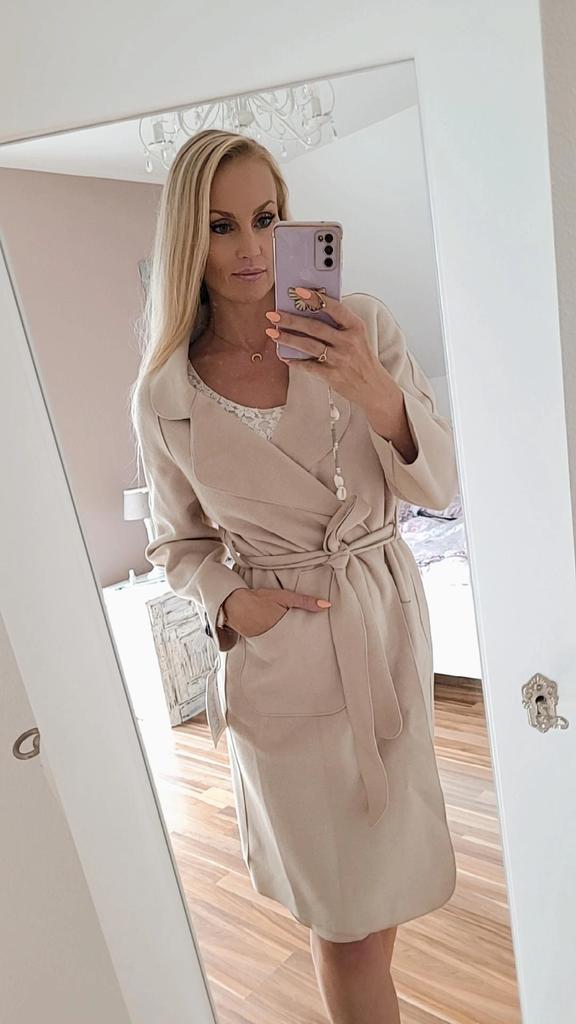 * high-quality cotton coat in trench coat look * ๐ฅ๐๐ถ๐ฒ๐ณ๐ฒ๐ฟ๐๐ฒ๐ถ๐ About 3 weeks ๐ฅ๐๐ถ๐ฒ๐ณ๐ฒ๐ฟ๐๐บ๐ณ๐ฎ๐ป๐ด The delivery includes 1 coat with a matching belt in the corresponding color and size. It is available in 6 different colors in sizes M to XXXL. I ordered it in size M in cream-white. I wear size 36 to 38. I weigh 62 kg over 172 cm. Cup size 75D Dimensions: 92-65-95 cm It fits me very well! ๐ฅ๐ค๐๐ฎ๐น๐ถ๐รค๐ I am very surprised by the quality. It is very well made, especially the material is very soft and pleasant on the skin. The seams are neatly finished and there are no loose threads. The coat is not stretchy. The coat has two pockets at the front for your hands. With the belt, which you can pull through the loop on the left and right, you can tie a beautiful bow at the front of the waist and thus beautifully emphasize the silhouette.. Even when opened, the coat falls beautifully. I particularly like the lapel collar . For me the coat ends just above the knees, which I think is perfect (I am 172 cm tall). For material composition : I guess 35% polyester & 65% cotton, but the label is unfortunately in Chinese. ๐ฅ๐๐ฎ๐๐ถ๐ Mega beautiful and high-quality coat for autumn or spring, which resembles a trench coat. You can clearly see the good quality of the coat ๐ You can order it in its original size. It fits true to size.