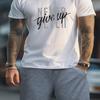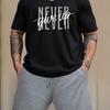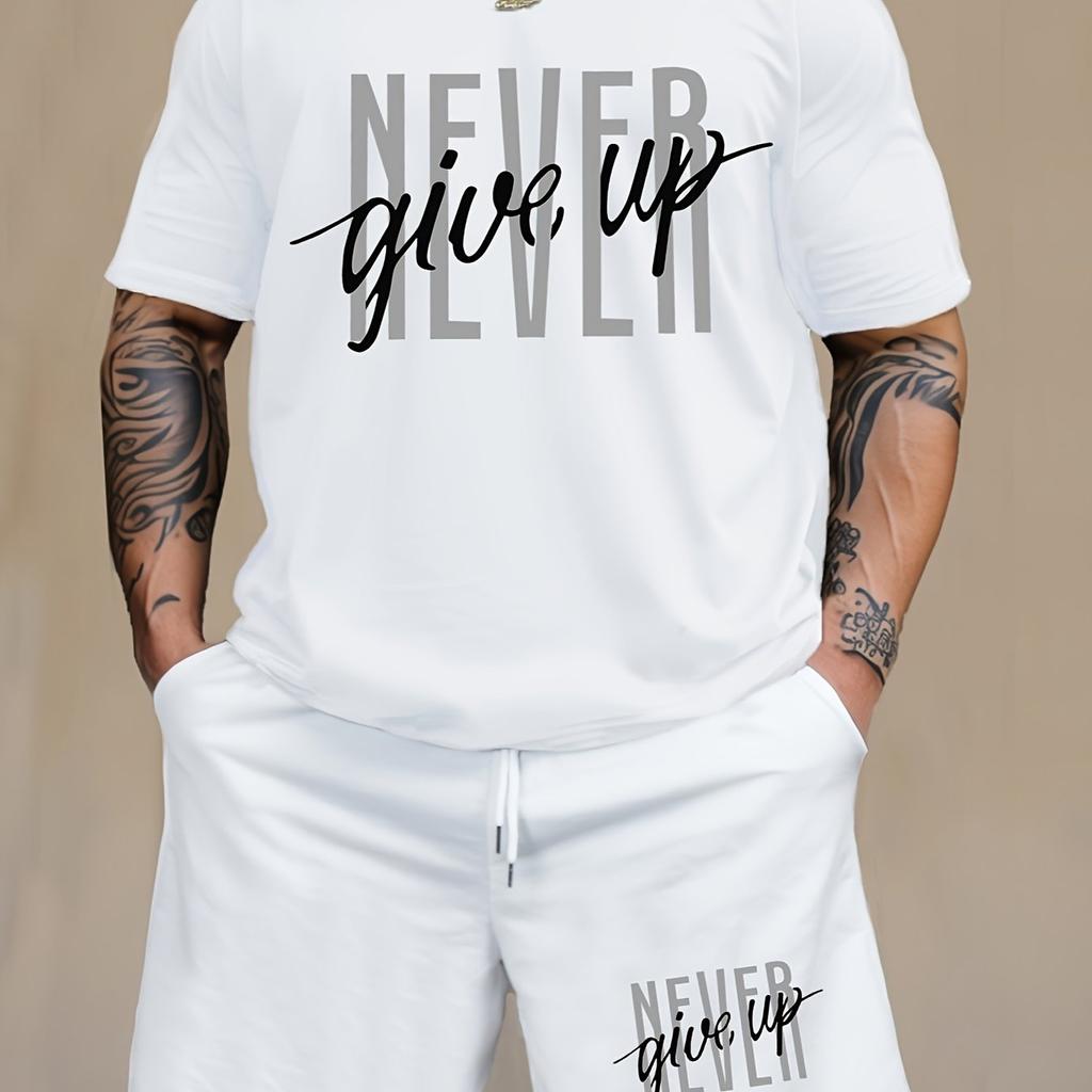 Mens NEVER GIVE UP Graphic Loungewear Set - Short Sleeve Tee & Drawstring Shorts with Pockets - Super Comfortable Casual Pajama