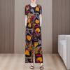 Size: 5XL,Bust:120cm, Shoulder:43cm, Top Length:68cm, Pants Waist:99cm-108cm, Hip:130cm, Pants Length:88cm