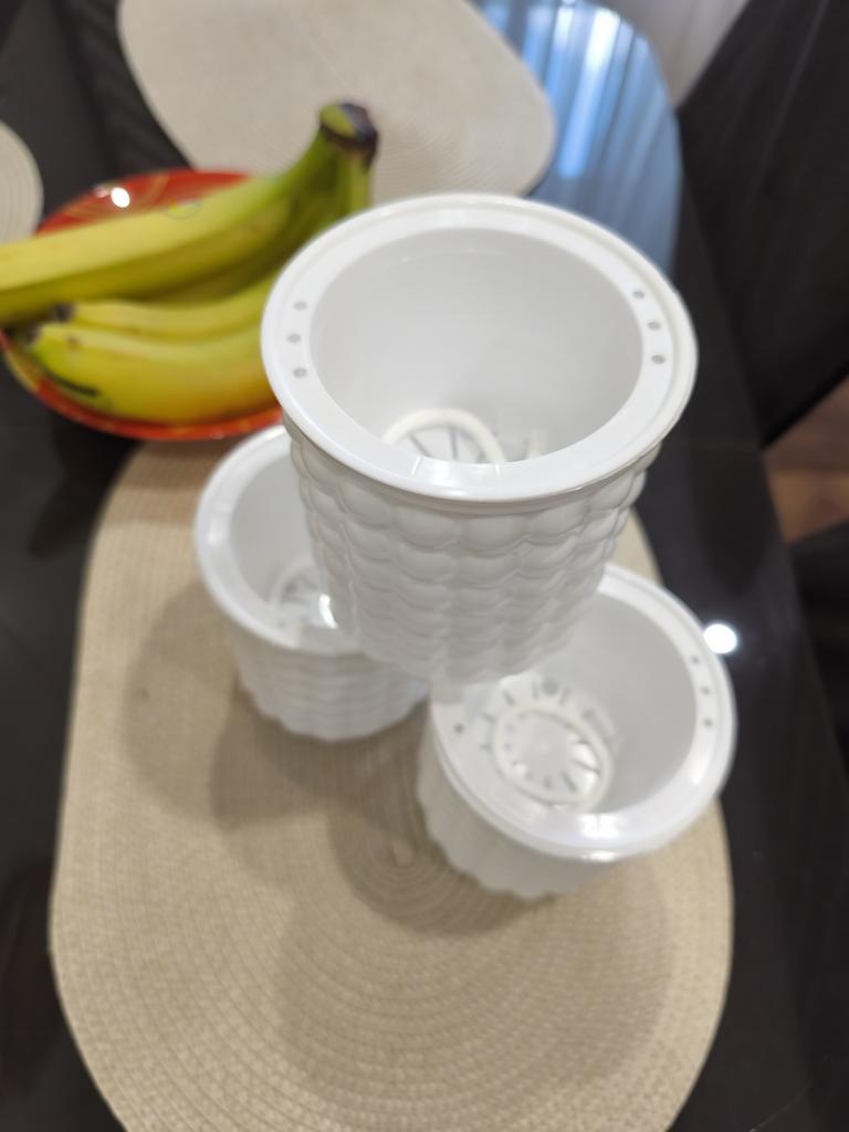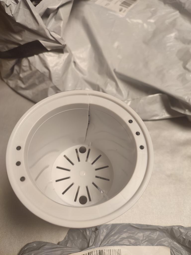 Ordered 2 pieces: white and cream color. One arrived with a broken inner pot, cracks on its upper part. Tried to glue it, didn't work.