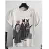 Animal Men's T-Shirt Japanese Samurai Cat Pattern T-Shirt 3d Print Short Sleeved T-Shirts Oversized Men Clothing Tops Summer New