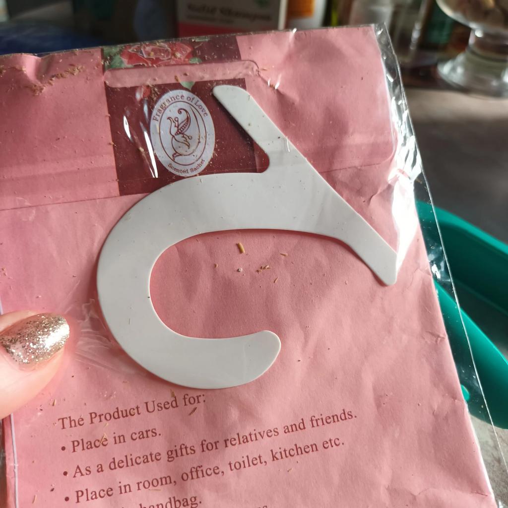 The hook on the sachet is soft, you need to clip it between clothes. The scent is weak.