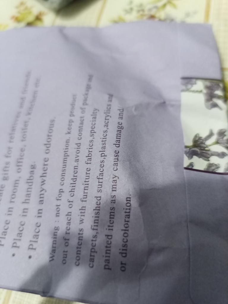 Useless product, the sachet was crumpled and torn, no smell whatsoever, I just had to throw it away.