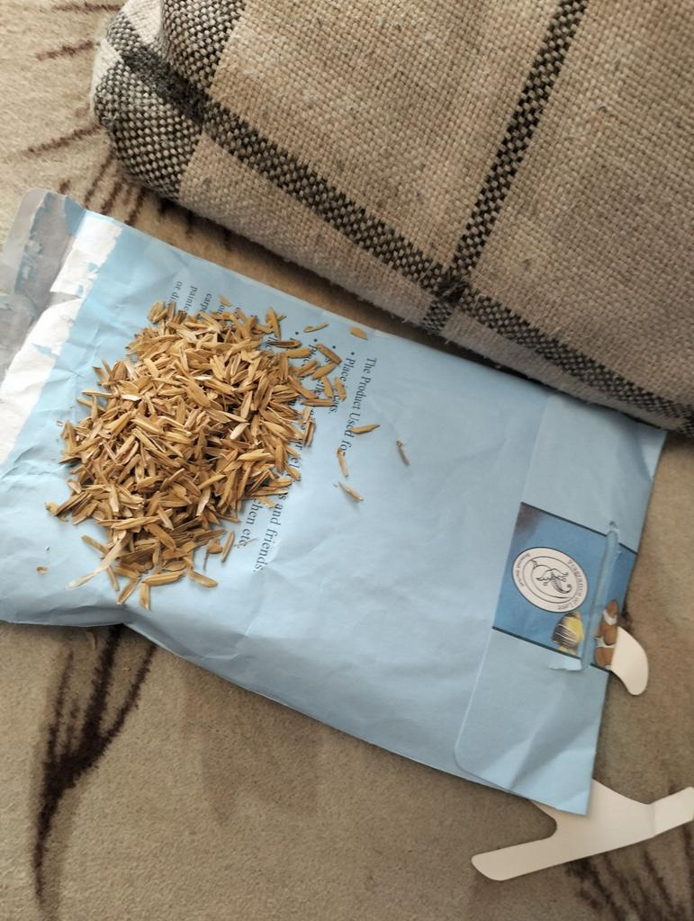The smell is practically absent. Inside the packaging there are some wood shavings, I understand that they should be impregnated with essential oils, due to which it should emit the aroma of flowers, but it is simply not there, as they have simply evaporated and weathered.