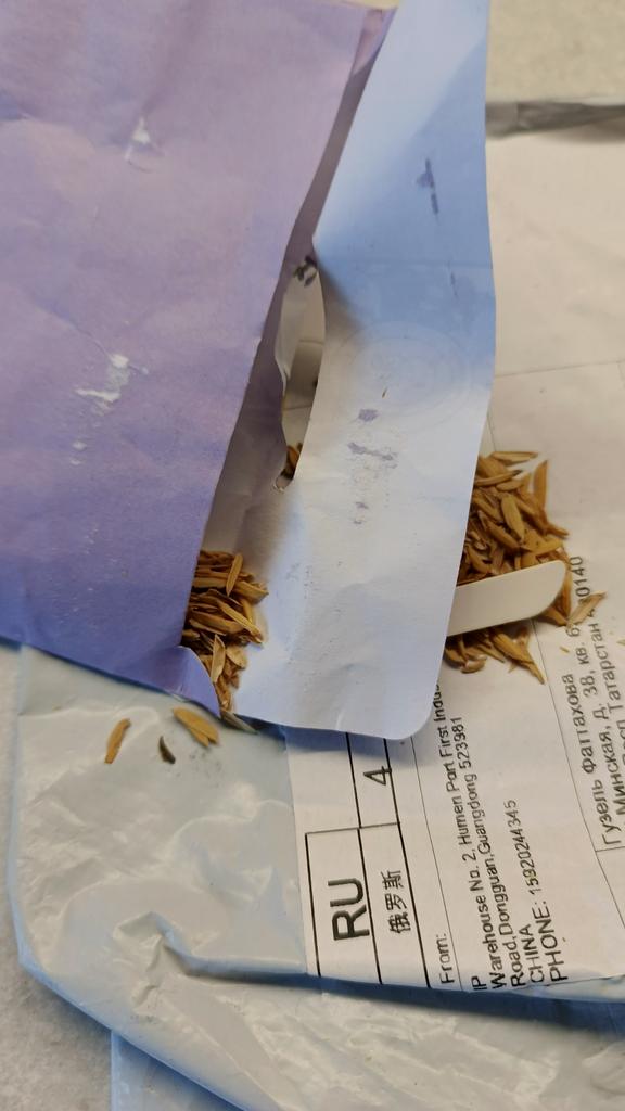 All torn, the grass spilled out of the packaging, smells of hay, no flower scents.