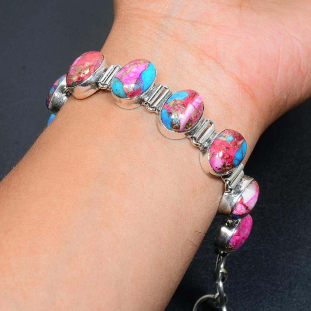 King Man Pink Spiny Oyster Natural Bracelet Pink Spiny Oyster Gemstone Handmade 925 Sterling Silver Bracelet Gemstone Bracelet For Gift