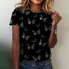 Summer New T-shirt Women's Clothing Round Neck Fashion Short Sleeve 3D Butterfly Print Casual Loose Top Women's T-shirt