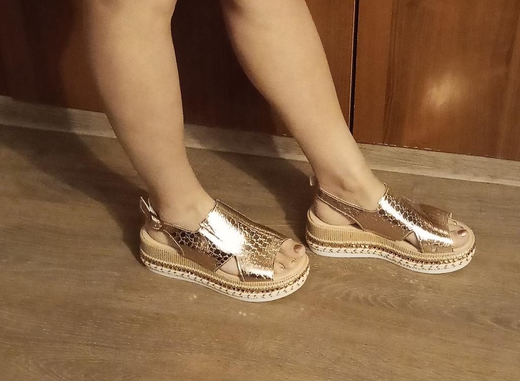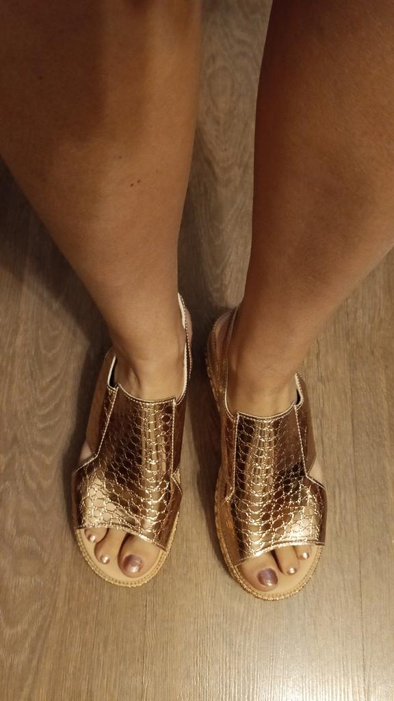 A bit wide! For my 38, I could try 38, but my feet can swell in the summer, I hope it will be comfortable! The color is more bronze copper than gold…