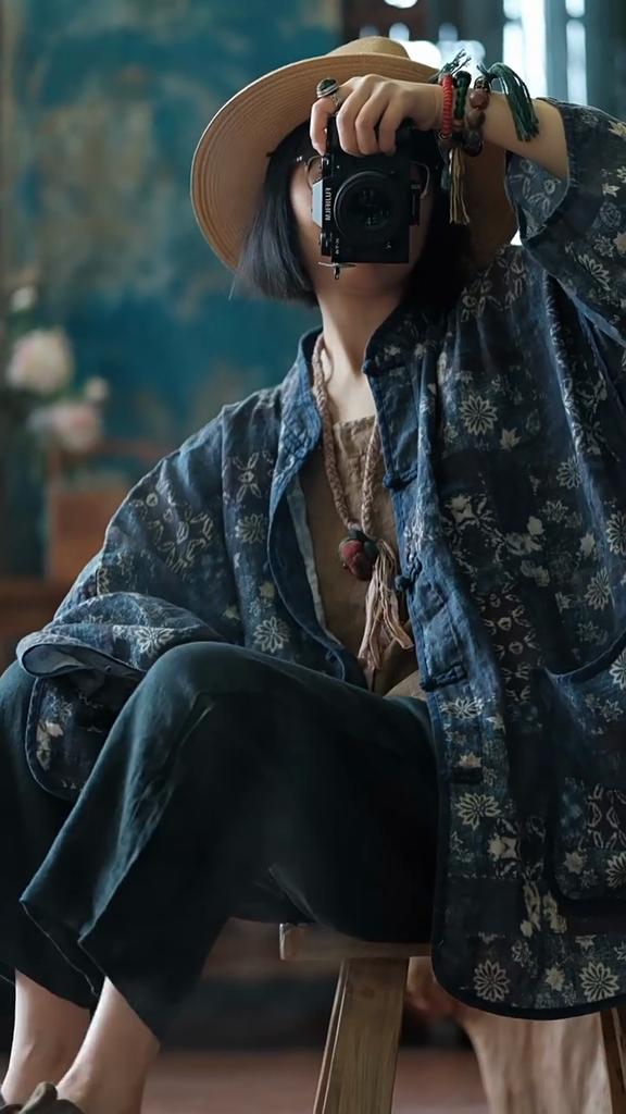 Johnature Women Vintage Print Floral Shirts Tops Print Floral Linen Blouses Spring Stand Long Sleeve Women Shirts