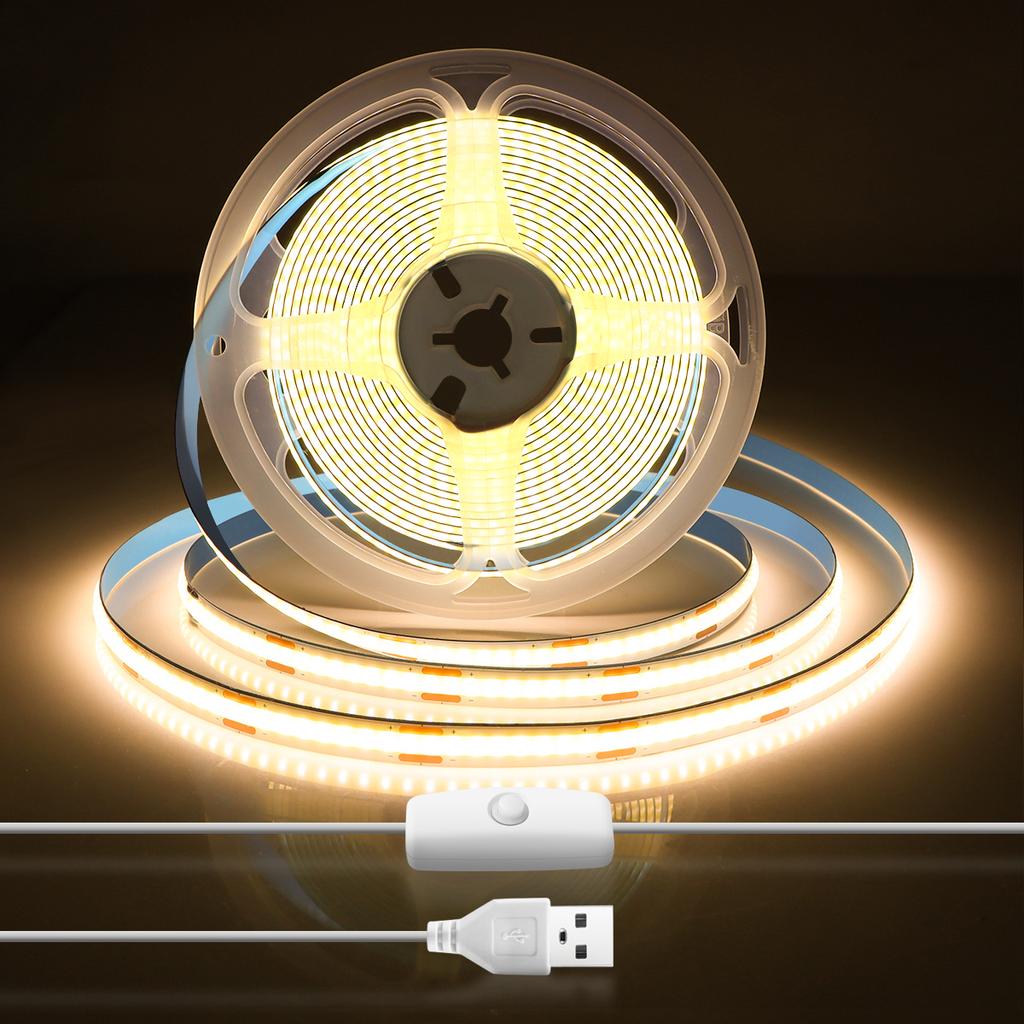 Push Button Switch Control USB LED Strips Lamp 1m 2m 3m 4m 5m TV Backgrount Lighting Luz COB LED Light for Home Room Decoration