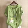 Women's Fashion Cat Parrot Prined Round Neck Short Sleeve T-shirt Casual Cotton Linen Graphic Shirt Leisure Loose Summer Blouse Tops Plus Size