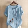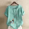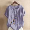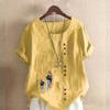 Women's Fashion Round Neck Short Sleeve T-shirt Casual Cotton Linen Graphic Shirt Leisure Loose Women and Girls Prined Summer Blouse Tops