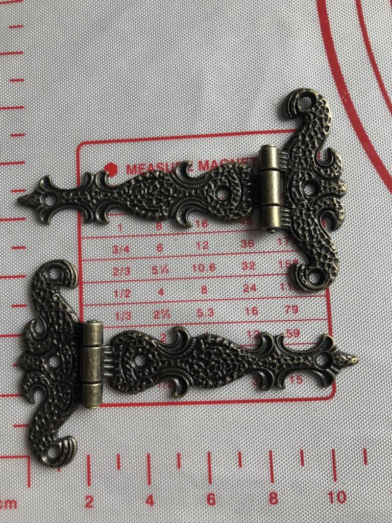 2pcs Cabinet Door Butt Hinges Zine-alloy Vintage Brass Plated Large Hinge for Jewelry Wooden Box Decorative Furniture Accessories