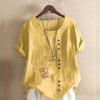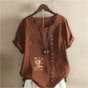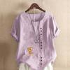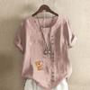 Women's Fashion Bear Hugging L Prined Round Neck Short Sleeve T-shirt Casual Cotton Linen Graphic Shirt Leisure Loose Summer Blouse Tops