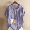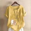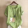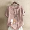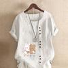 Women's New Fashion Linen Shirt Round Neck Short Sleeve Rabbit and Bear Printed T-shirt Summer Ladies Casual Plus Size Blouse Tops