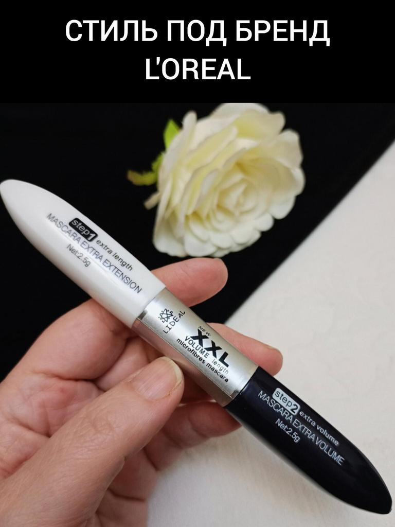 2 IN 1 Black Mascara Waterproof Silk Fiber Volume Double Effect Long Lasting Curling Eyes Makeup