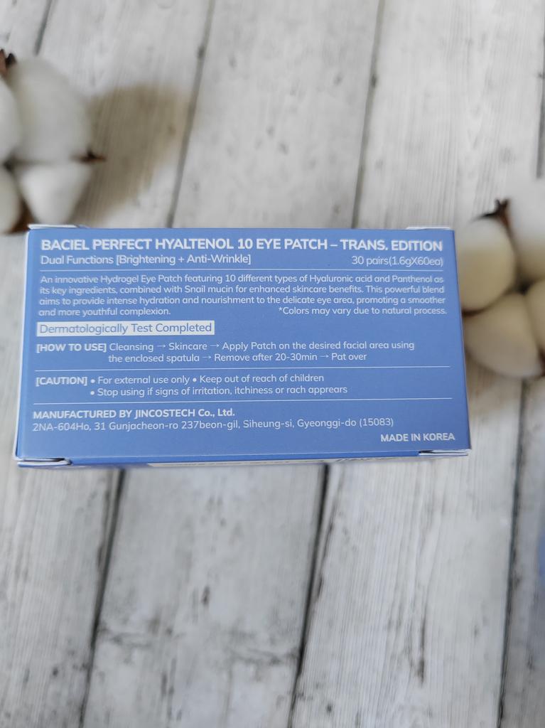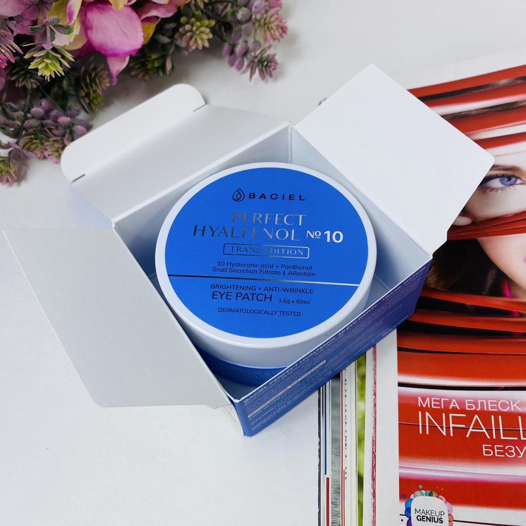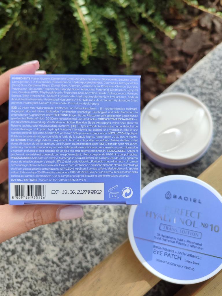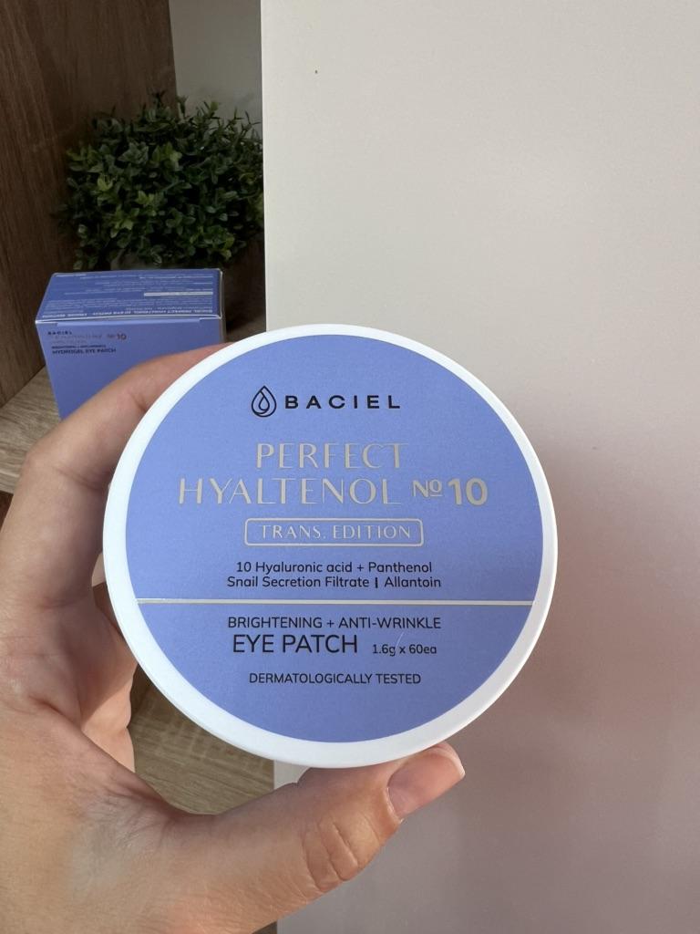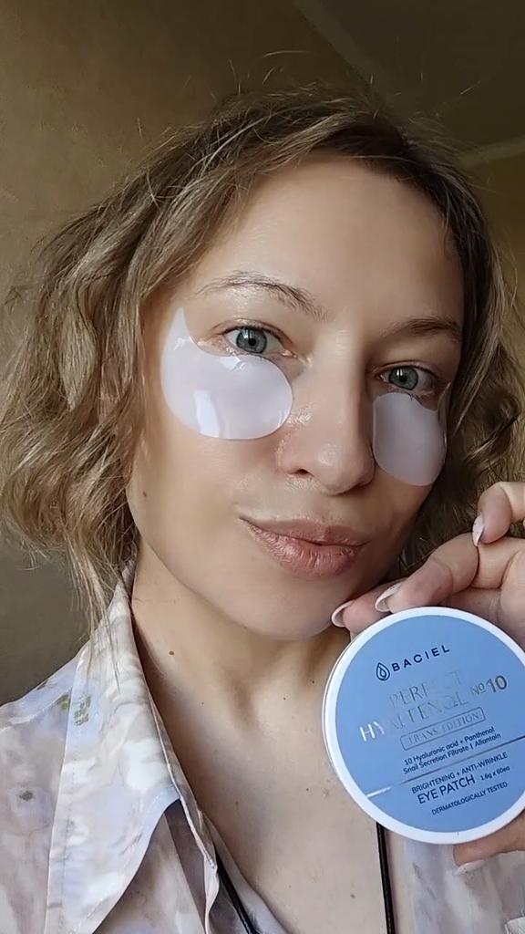 Patches for the skin around the eyes 💙 "Perfect Hyaltenol √10 from the Korean brand BACIEL 🇰🇷 60 pcs I am in love with this brand and its cosmetics. I especially like the patches 🥰, the result is like a wave of a magic wand ✨. This is not surprising, because the patches contain many powerful and effective components: niacinamide, adenosine, allantoin, panthenol, snail mucin, ten types of hyaluronic acid and many other healing components 😉. Such patches can be applied not only under the eyes. Patches smooth out fine wrinkles and even out the microrelief. So they can be applied to the forehead, nostrils, "crow's feet". Patches are comfortable, hold well, do not slip . Application method: We apply patches to the desired area of the face using a spatula (included in the kit). Leave for 20-30 minutes. We remove, and the remains of the essence are lightly hammered into the skin with the tips of our fingers until it is completely absorbed.. The patches are bombastic 💣, I definitely recommend them 🛍️. If the review was useful, put it as a favorite ❤️💙❤️ I received the product in 19 days by "Nova Poshta" 🚀🚀🚀 The track was tracked completely. The arrival at the delivery point was notified by sms 📲 The packaging from this seller is always top notch. The product is neatly wrapped in packaging material and placed in a cardboard box. Everything arrived safe and sound ☺️. The package contains all the necessary information about the cosmetic product. Expiry dates are indicated Happy shopping and fast deliveries to everyone 🛍️☺️🚀🌿 And remember that every woman is a star, so shine brighter 🌞