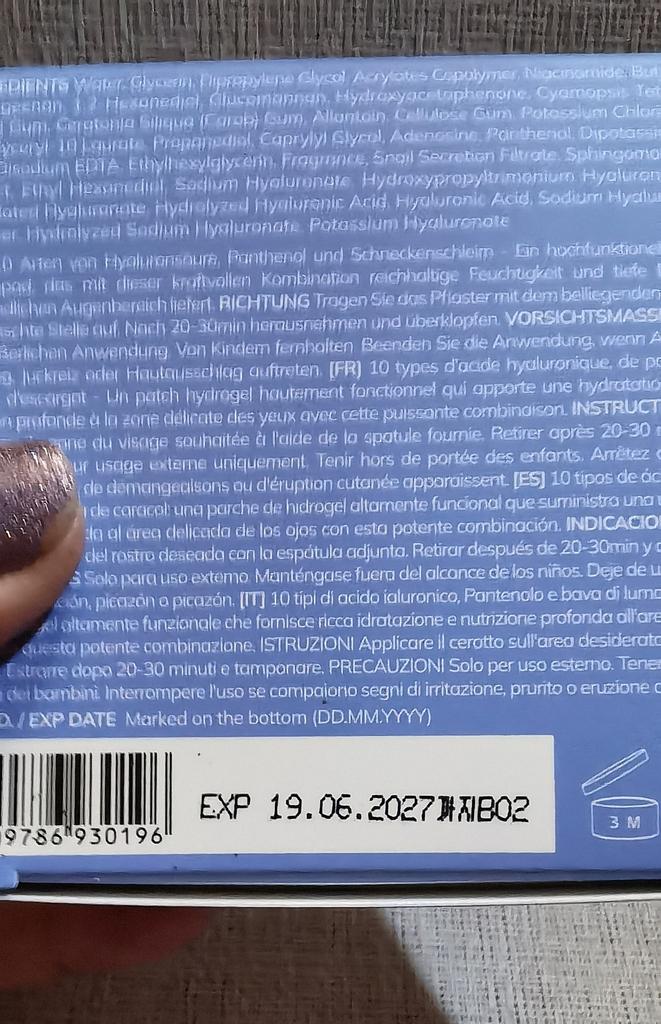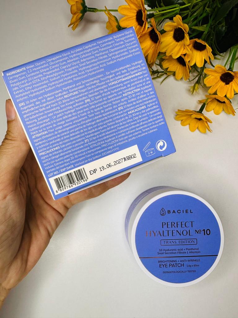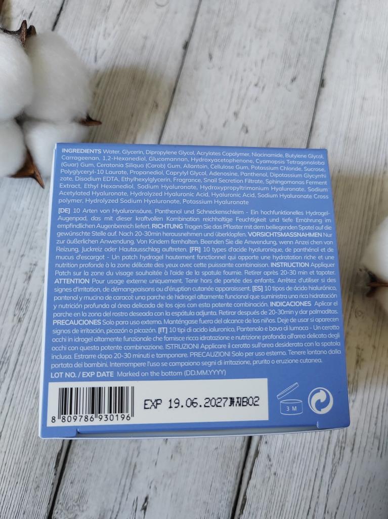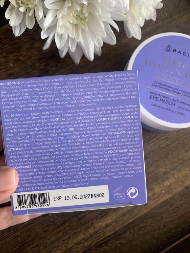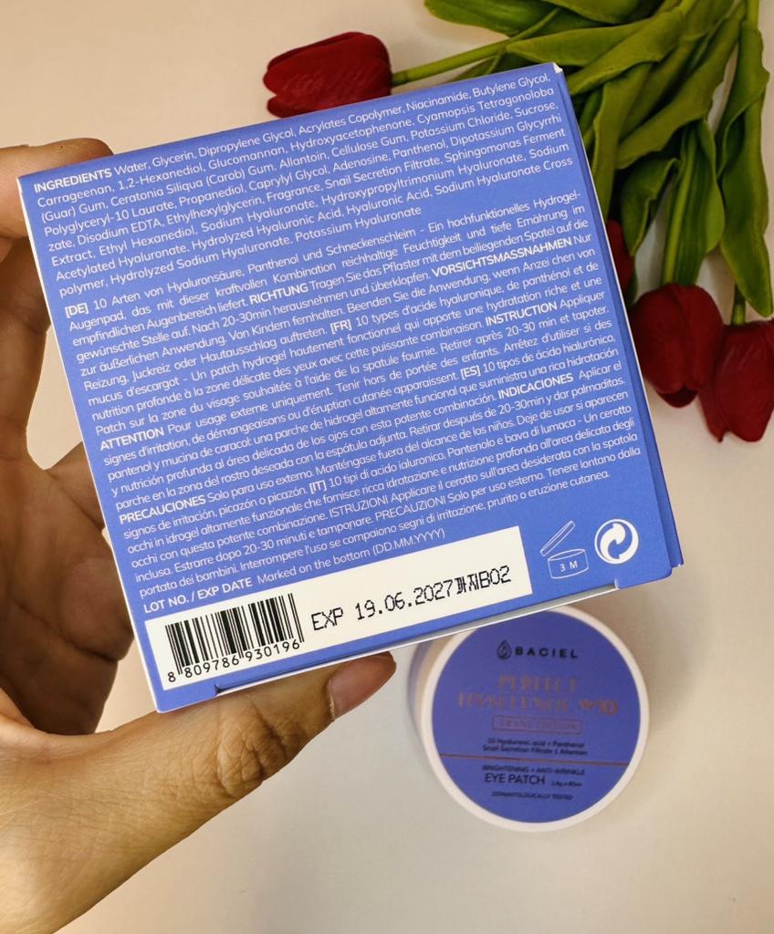 Patches for the skin around the eyes 💙 "Perfect Hyaltenol √10 from the Korean brand BACIEL 🇰🇷 60 pcs I am in love with this brand and its cosmetics. I especially like the patches 🥰, the result is like a wave of a magic wand ✨. This is not surprising, because the patches contain many powerful and effective components: niacinamide, adenosine, allantoin, panthenol, snail mucin, ten types of hyaluronic acid and many other healing components 😉. Such patches can be applied not only under the eyes. Patches smooth out fine wrinkles and even out the microrelief. So they can be applied to the forehead, nostrils, "crow's feet". Patches are comfortable, hold well, do not slip . Application method: We apply patches to the desired area of the face using a spatula (included in the kit). Leave for 20-30 minutes. We remove, and the remains of the essence are lightly hammered into the skin with the tips of our fingers until it is completely absorbed.. The patches are bombastic 💣, I definitely recommend them 🛍️. If the review was useful, put it as a favorite ❤️💙❤️ I received the product in 19 days by "Nova Poshta" 🚀🚀🚀 The track was tracked completely. The arrival at the delivery point was notified by sms 📲 The packaging from this seller is always top notch. The product is neatly wrapped in packaging material and placed in a cardboard box. Everything arrived safe and sound ☺️. The package contains all the necessary information about the cosmetic product. Expiry dates are indicated Happy shopping and fast deliveries to everyone 🛍️☺️🚀🌿 And remember that every woman is a star, so shine brighter 🌞