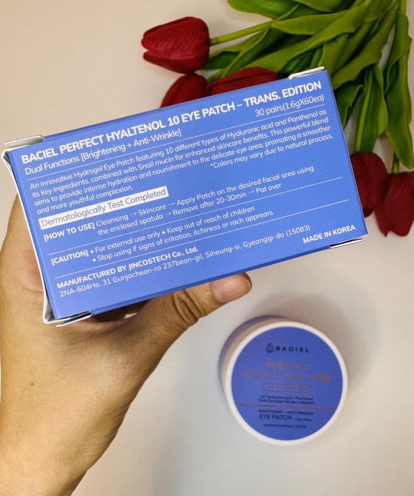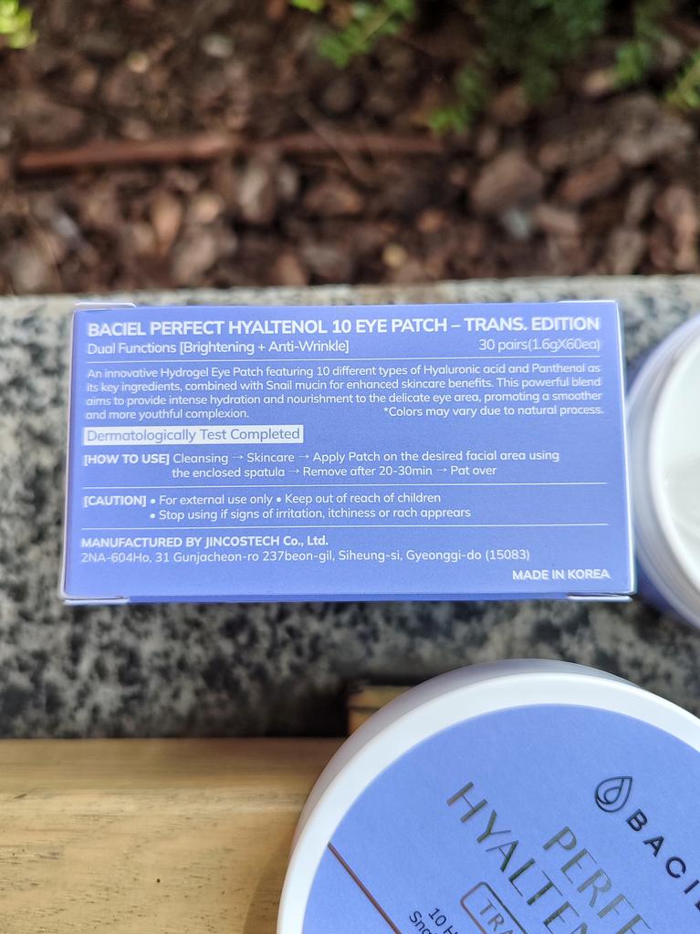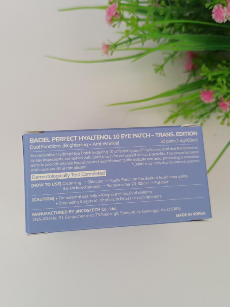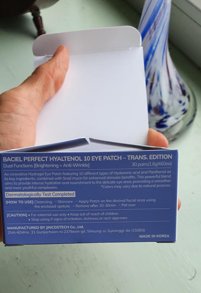 Perfect korean hydrogel eye patches.Shop Baciel,in the jar 60 pairs(30 days),came with little plastic spoon. Functions: # Hydration # Nutrition # reducing appearance of fine lines # has cooling effect with reduction of puffiness Best time to use it is at night.Leave it for 3-4 hours or if you don't have that time then can use during the day 20-30 minutes Didn't cause any reason,easy to use,they have lots of serum around them,have slight pleasant scent.Delivery took 18 days to Ireland.Happy Shopping!