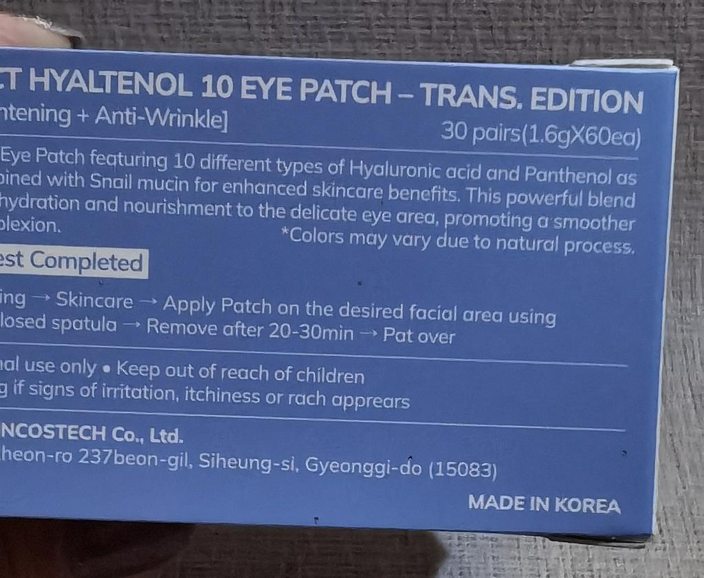 Perfect eye masks 💦 Packed well, it arrived in 16 days at a pickup point. As usual with Korean beauty products, the quality is outstanding. Hydrating and anti-age. Hope it works 😁🤞🏻 Have a nice day 💖😊💖
