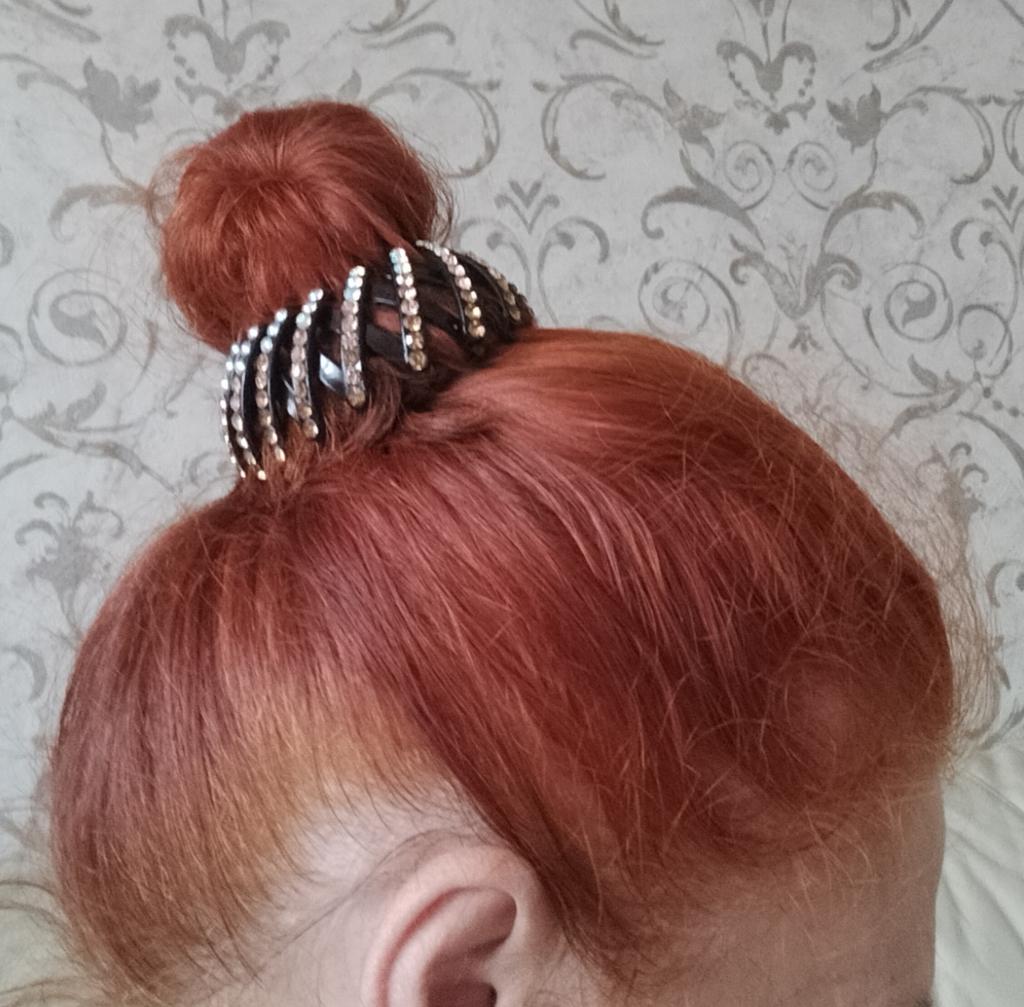 A gorgeous hair clip. You can put your hair in a ponytail or in a bun. It looks very elegant. A very simple and convenient mechanism that is easy to fix: it reminds me of a children's construction set)