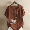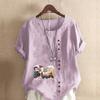 Women's Fashion Round Neck Short Sleeve T-shirt Casual Cotton Linen Graphic Shirt Leisure Loose Cartoon Characters Prined Summer Blouse Tops