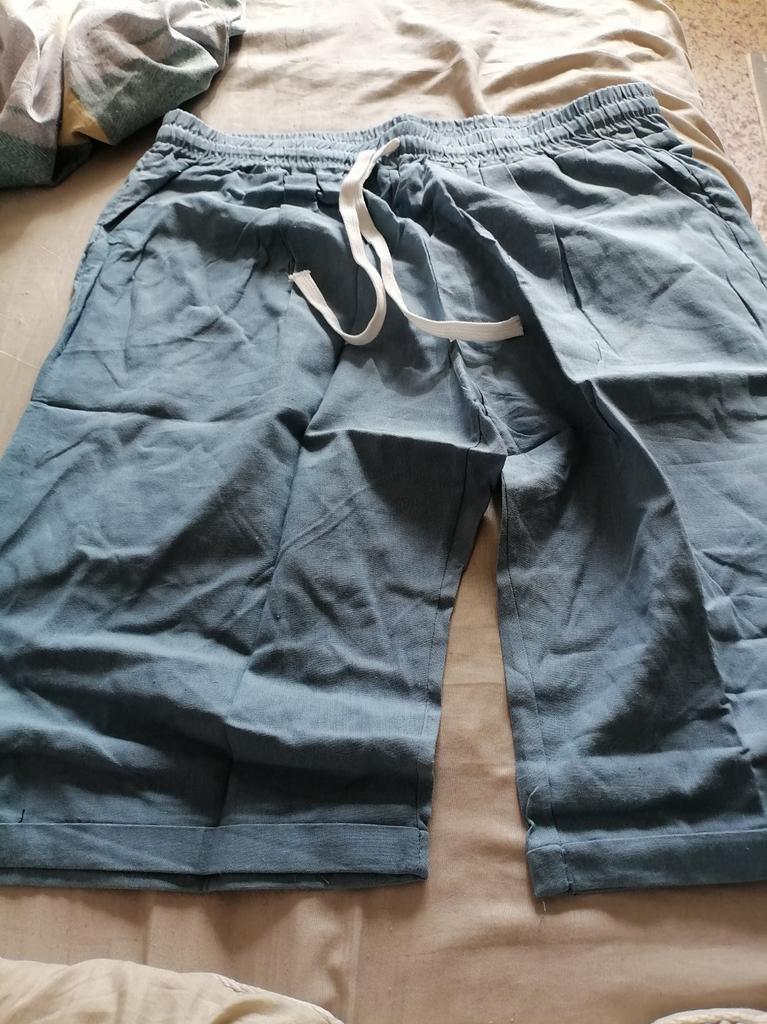I took larger trousers because they have an elastic band, they look better if they are not tight, they will not wrinkle as much, especially since they are made of cotton and linen, they need to be shortened for beauty