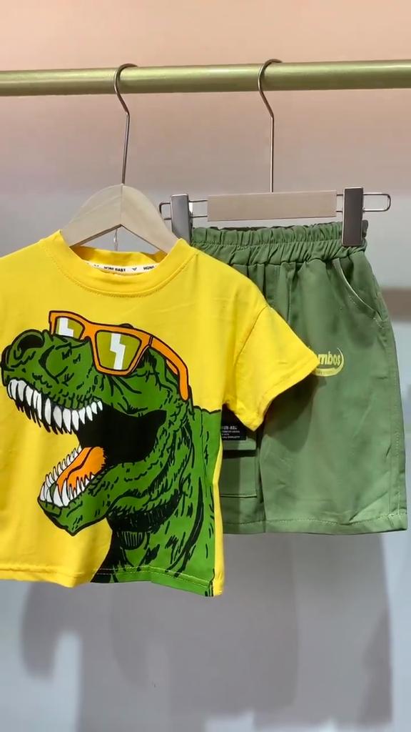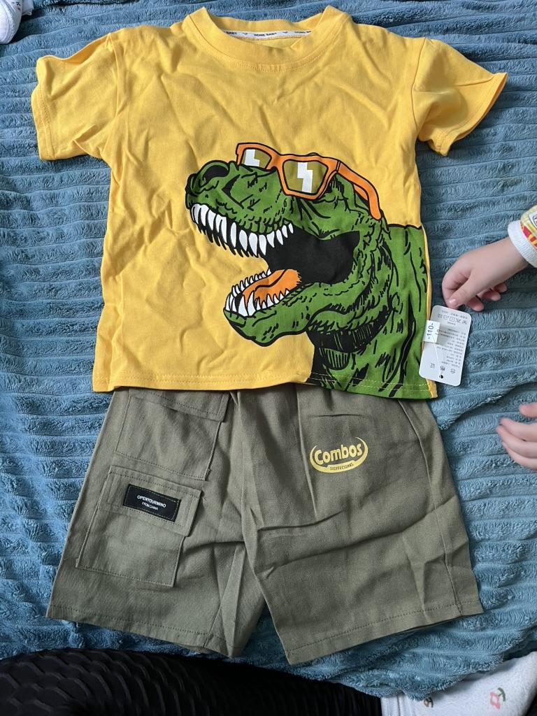 Boys' 2-Piece Cotton Set - Summer Cartoon Dinosaur Printed T-shirt + Shorts High - Quality Casual Outfit - 6M-5Y