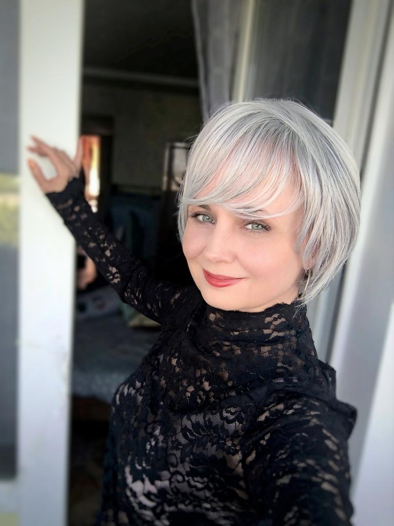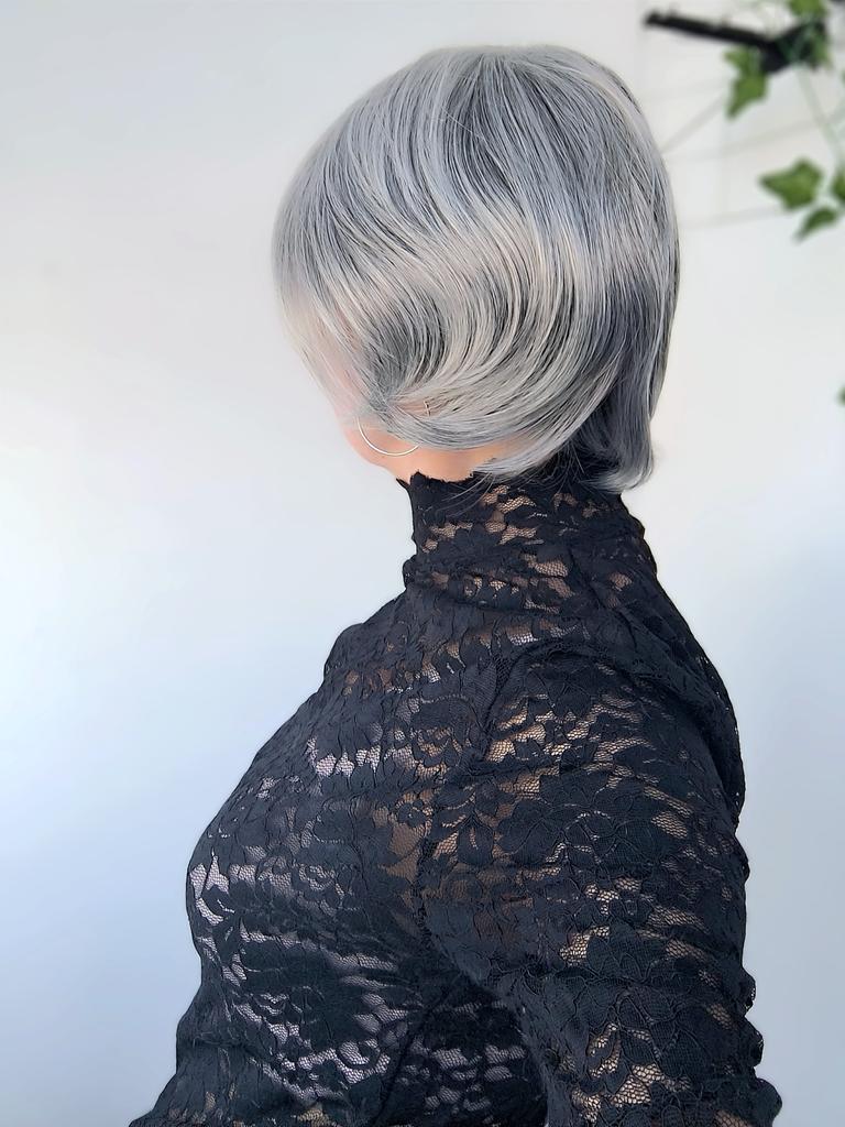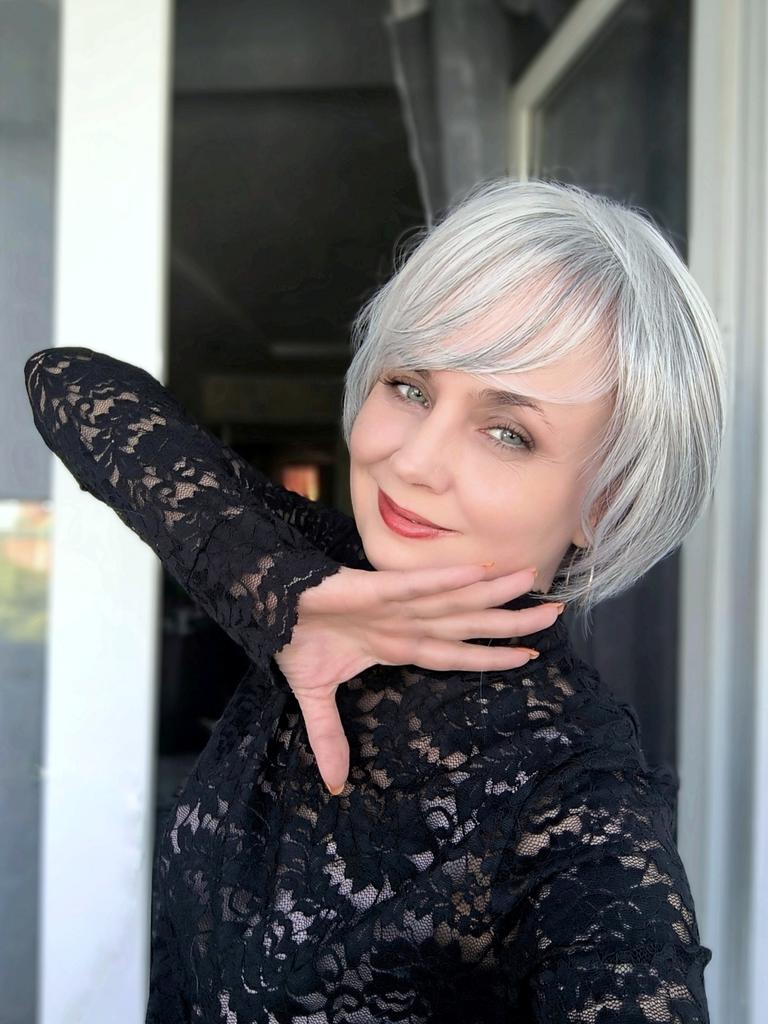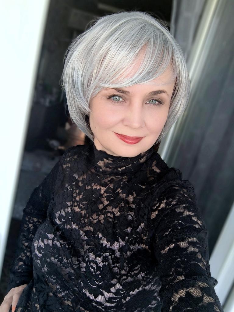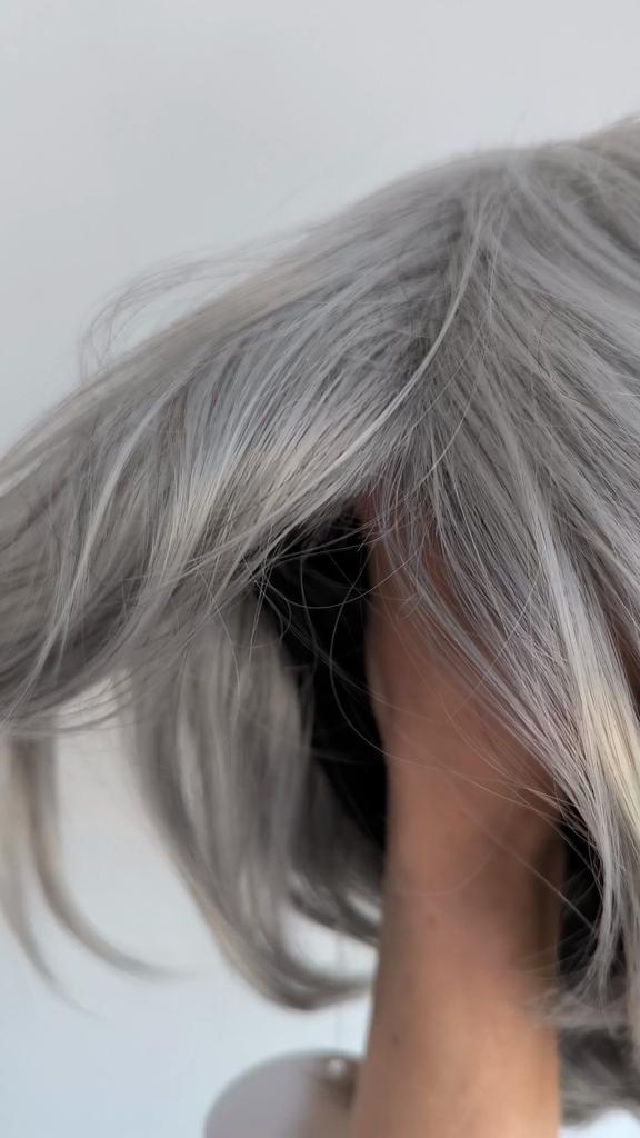 The wig is super for mature age. Very natural gray color, excellent styling. If only the part looked like a real one, then it would be absolutely wonderful. I am satisfied. Vicki has a good video. Everything corresponds as well.