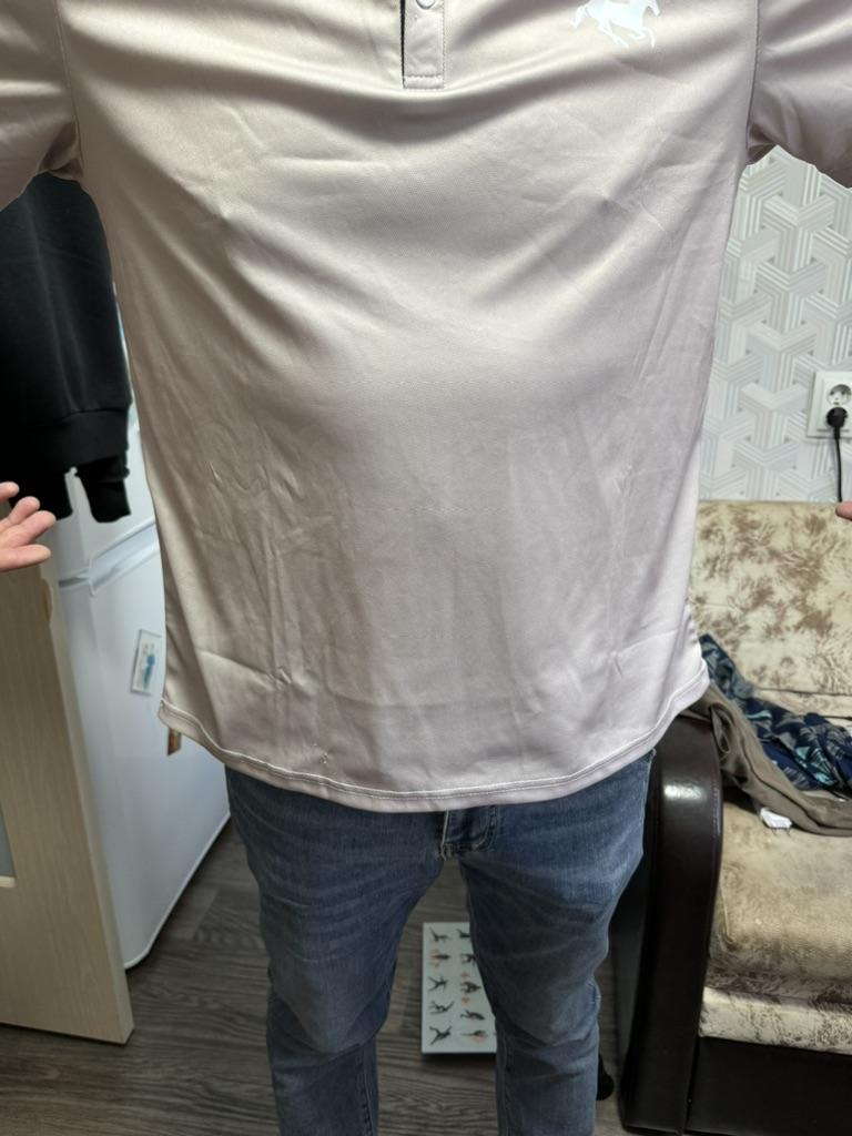 Didn't like the fabric, thought it was cotton knitwear, but it looks like silk, it's shiny, not a t-shirt, but rather a shirt. Sewn well, corresponds to the size.