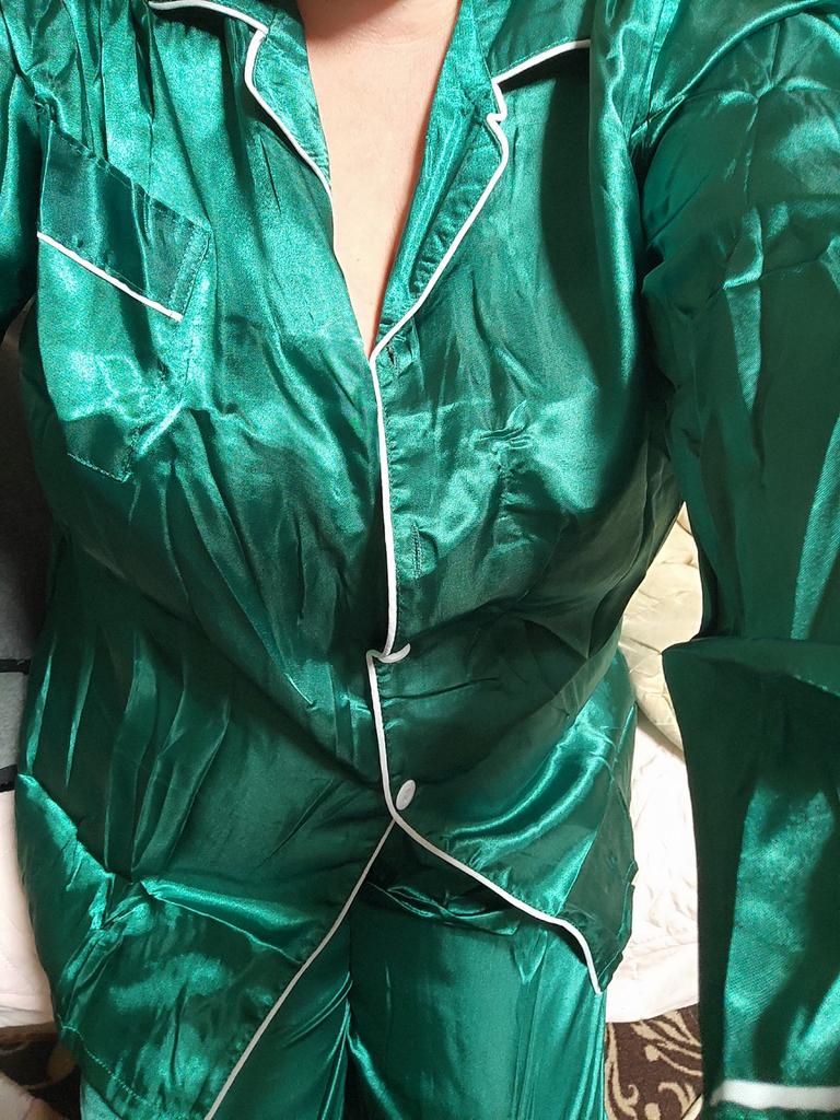 Very beautiful pajamas! The size fit perfectly! The color is more beautiful in person than in the photo. In the photo it's emerald, but in reality it's a more natural green, in a word, Christmassy! I recommend it!❤️🎄