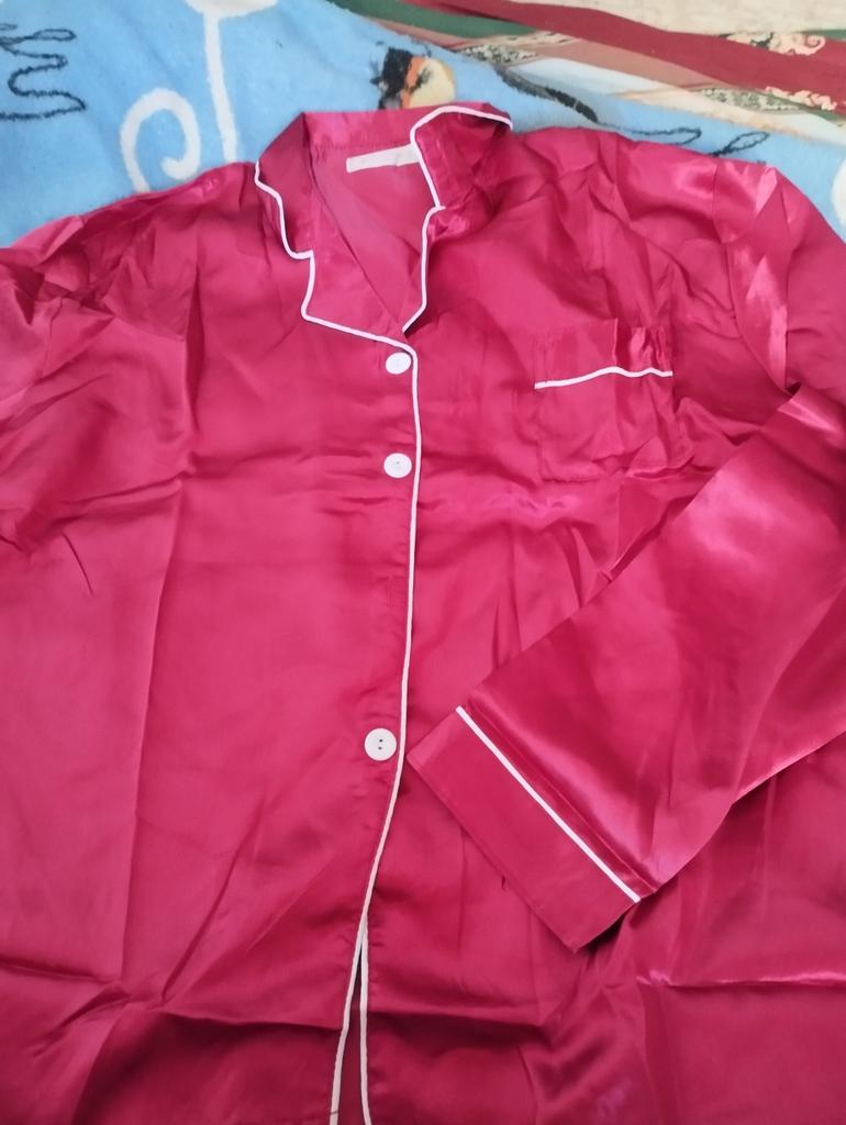 The fabric is thin and doesn't look like satin at all. The size doesn't match the stated size. The pants fit, but the blouse is small..