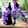 Blue Tilted Flower Print Yoga Outfit for Women Fashion Workout Leggings Fitness Sports Casual Yoga Set Sports Suit